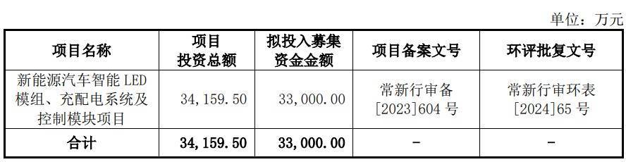 通宝光电本次募集资金总额为30,388.93万元,扣除不含税的发行费用后募集资金净额为26,782.07万元,比原计划少6217.93万元。通宝光电2026年2月5日披露的招股书显示,公司拟募集资金33,000.00万元,用于新能源汽车智能LED模组、充配电系统及控制模块项目。