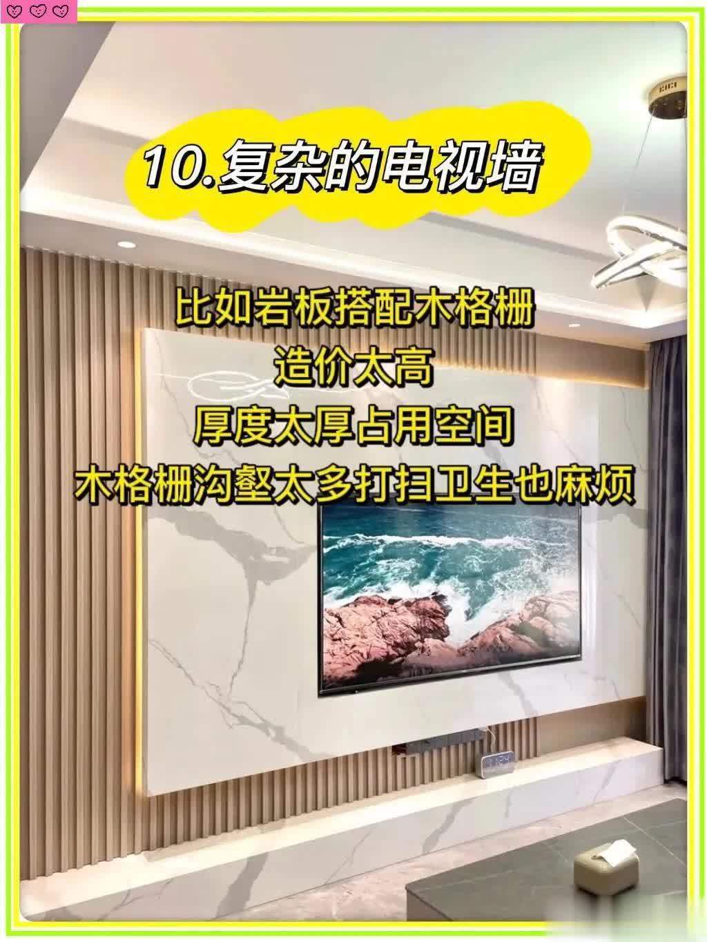 10. 复杂电视墙(岩板+木格栅):占空间还难打扫