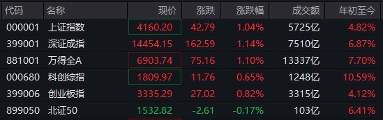 【大河财立方消息】2月25日,A股多个股指高开,截至11:00发稿,沪指涨1.04%,深成指涨1.14%,创业板涨0.82%,科创综指涨0.65%。全市场超过3900只个股上涨。
